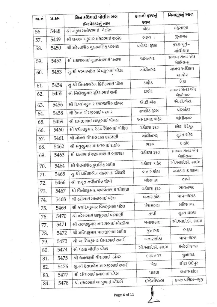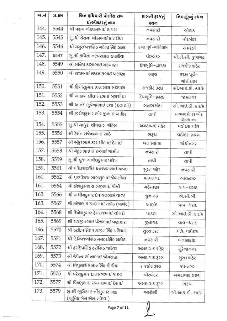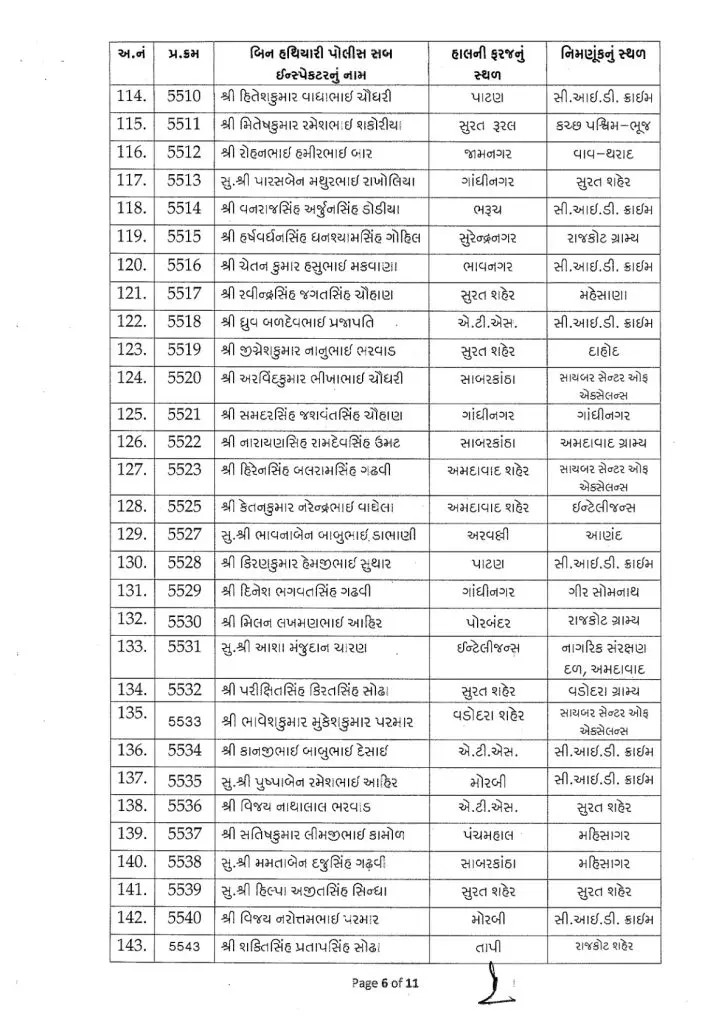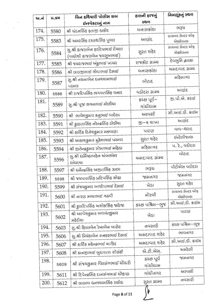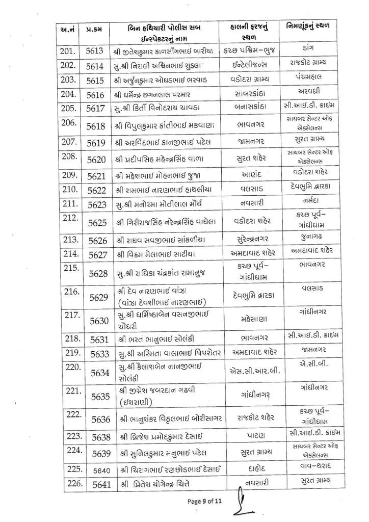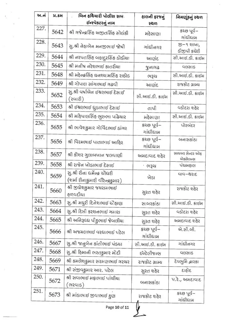 આ 254 અધિકારીઓની નિમણૂકો રાજ્યના વિવિધ શહેરો અને જિલ્લાઓમાં તેમજ ઇન્ટેલીજન્સ વિભાગ, સી.આઇ.ડી. ક્રાઇમ, સાયબર સેન્ટર ઓફ એક્સેલન્સ, એટીએસ (એન્ટી ટેરરિસ્ટ સ્કવોડ), એસીબી (લાંચ રૂશ્વત વિરોધી બ્યુરો), નાગરિક સંરક્ષણ દળ અને વિવિધ ગ્રામ્ય તથા જિલ્લા પોલીસ હેડક્વાર્ટર જેવા સંવેદનશીલ અને મહત્વપૂર્ણ એકમોમાં કરવામાં આવી છે.