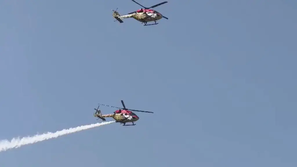 આકાશગંગા ટીમના જવાનો વિમાનમાંથી પેરાશુટની મદદથી સલામત અને સચોટ ઉતરાણ કરે છે તે દ્રશ્યો લોકોએ તાળીઓથી વધાવ્યા હતા. બીજી તરફ મોરપીંછના રંગોથી સજ્જ સારંગ ટીમના હેલિકોપ્ટરોના સુમેળબદ્ધ કરતબોએ દર્શકોને મંત્ર મુગ્ધ કરી દીધા.