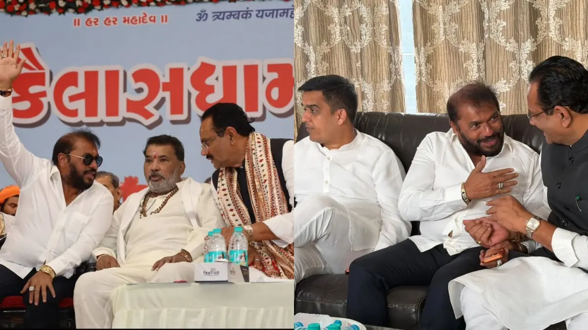 Bhavnagar: ભાવનગર જિલ્લાના પાલીતાણા તાલુકામાં આવેલ નાનીમાળ ગામમાં કૈલાશધામ મંદિર આશ્રમ ખાતે નાયબ મુખ્યમંત્રી હર્ષભાઈ સંઘવીની ઉપસ્થિતિમાં મહાશિવરાત્રીના પાવન પ્રસંગે 12 જયોર્તિલિંગ સહિત 17 મંદિરનો જીર્ણોદ્ધાર સમારોહ યોજાયો હતો. આ પ્રસંગે પરસોત્તમ સોલંકી અને હીરા સોલંકી બંધુઓ હર્ષ સંઘવી અને જીતુ વાઘાણી સાથે હળવા મૂડમાં જોવા મળ્યા હતા.