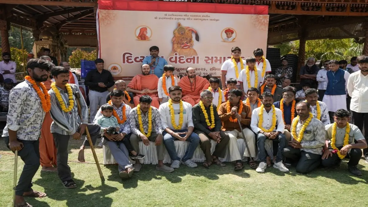 Divyang Vandana Ceremony At Salangpurdham: શ્રી સ્વામિનારાયણ મંદિર વડતાલધામ (Vadtaldham) સંચાલિત સુપ્રસિદ્ધ યાત્રાધામ સાળંગપુર શ્રીકષ્ટભંજનદેવ હનુમાનજી મંદિર(Salangpur Shrikashtabhanjandev Hanumanji Temple)ખાતે મહાશિવરાત્રી(Mahashivaratri)ના પાવન પર્વની અનોખી રીતે ઉજવણી કરવામાં આવી હતી.