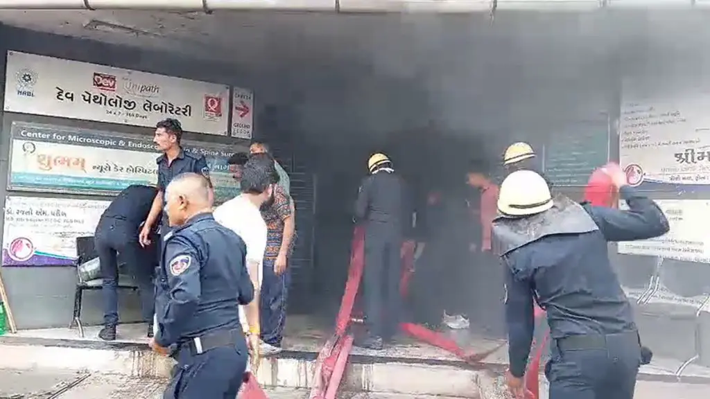 Bhavnagar Hospital Fire: ભાવનગરના ભરચક ગણાતા એવા કાળાનાળા વિસ્તારમાં આવેલા સમીપ કોમ્પ્લેક્ષમાં આજે સવારે આગનો બનાવ બન્યો હતો. બેઝમેન્ટમાં લાગેલી આગ બિલ્ડિંગમાં પ્રસરી હતી. બનાવની જાણ થતાં ફાયર વિભાગની ટીમ પહોંચી હતાી અને આગ પર કાબૂ મેળવ્યો હતો. આગ લાગી એ દરમિયાન અફરા-તફરીના માહોલ વચ્ચે સ્થાનિક યુવાનો અને ફાયર વિભાગ દ્વારા કોમ્પલેક્ષમાં આવેલી હોસ્પિટલમાંથી દર્દીઓને રેસ્ક્યૂ કરવાની કામગીરી હાથ ધરી હતી.