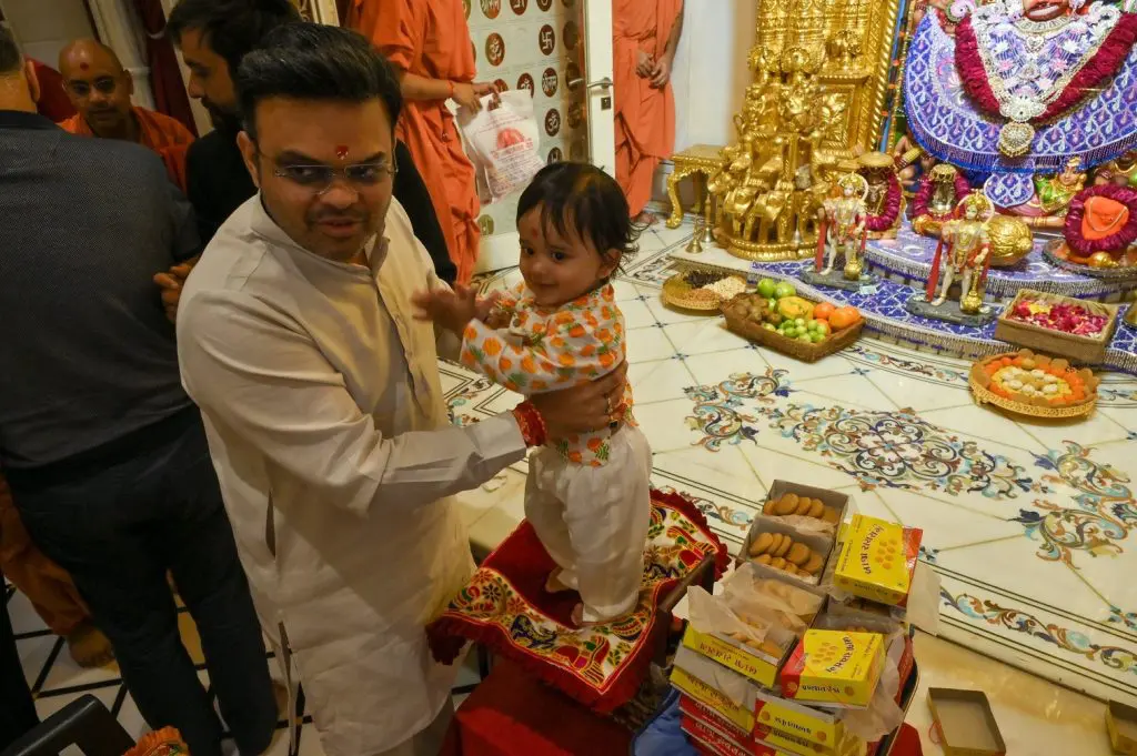 જય શાહ જ્યારે સાળંગપુરધામ પધાર્યા ત્યારે મંદિરના વહીવટી સંતો અને ટ્રસ્ટીઓ દ્વારા તેમનું ઉમળકાભેર સ્વાગત કરવામાં આવ્યું હતું. જયભાઈએ પરિવાર સાથે દાદાના દરબારમાં પૂજા-અર્ચના કરી હતી અને મંત્રઘોષ સાથે દાદાની આરતીનો લાભ લીધો હતો. તેમણે દાદાના ચરણે ધજા અર્પણ કરી રાષ્ટ્રની સુખ-શાંતિ અને રમતજગતની પ્રગતિ માટે પ્રાર્થના કરી હતી.