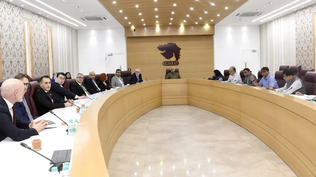 Gandhinagar News: મુખ્યમંત્રી ભૂપેન્દ્ર પટેલની સૌજન્ય મુલાકાત ઇંગ્લેન્ડના વેસ્ટ મિડલેન્ડ કમબાઈન્ડ ઓથોરીટીના વેસ્ટ મિડલેન્ડના મેયર રિચાર્ડ પાર્કર અને હાઈલેવલ ડેલીગેશને ગાંધીનગરમાં લીધી હતી. વડાપ્રધાન નરેન્દ્ર મોદીના નેતૃત્વમાં થયેલી યુ.કે.-ઇન્ડીયા ટ્રેડ ડિલ પછી આ ડેલિગેશન પ્રથમવાર ગુજરાત મુલાકાતે આવ્યું છે. મુખ્યમંત્રી ભૂપેન્દ્ર પટેલ સાથેની આ મુલાકાત દરમિયાન ડેલિગેશનના સભ્યોએ ખાસ કરીને હાયર એજ્યુકેશન-ગ્રીન ઇકોનોમી અને EV, સ્કીલ ડેવલોપમેન્ટ, એ.આઇ., એડવાન્સ મેન્યુફેક્ચરીંગ જેવા વિવિધ ક્ષેત્રોમાં સહયોગની તત્પરતા વ્યક્ત કરી હતી.