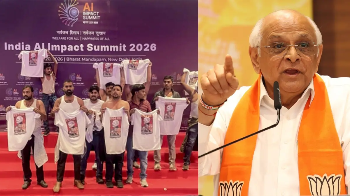 Gandhinagar: દિલ્હી સ્થિત 'ભારત મંડપમ'માં આયોજિત AI સમિટ 2026માં (AI Impact Summit 2026) ઈન્ડિયન યુથ કોંગ્રેસના કાર્યકર્તાઓએ ભારત-અમેરિકા ટ્રેડ ડીલને લઈને વિરોધ પ્રદર્શન કર્યું હતુ. આ દરમિયાન કોંગ્રેસ કાર્યકર્તાઓ પોતાની ટી-શર્ટ ઉતારીને અર્ધ નગ્ન થઈ ગયા હતા અને વડાપ્રધાન મોદી વિરુદ્ધ સુત્રોચાર કર્યાં હતા. જેને લઈને ગુજરાતના મુખ્યમંત્રી ભૂપેન્દ્ર પટેલે કોંગ્રેસ પર આકરા પ્રહાર કર્યાં છે.
