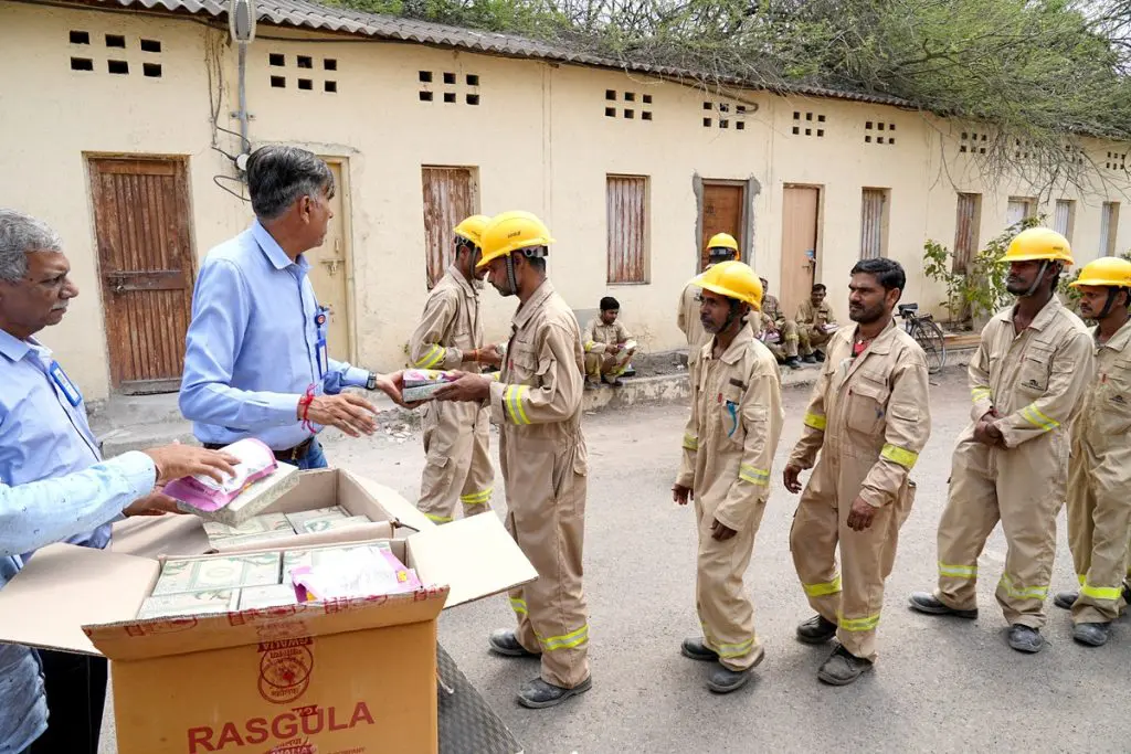 જામનગરમાં રિફાઇનરીની આસપાસના 15 ગામના 31,000 લોકોને મિઠાઈની ભેટ ઉપરાંત 31,000 મહિલાઓમાં સાડીનું વિતરણ કરાવામાં આવી રહ્યું છે. તેવી જ રીતે, ગીરતારાની આસપાસના ગામોમાં 5,000 લોકોને મિઠાઈ વહેંચાશે. સર્વ સમાવેશી અભિગમ દાખવતા, જામનગર સંકુલમાં ચાલતા વિવિધ પ્રોજેક્ટ્સમાં કાર્યરત 95,000થી વધુ કોન્ટ્રાક્ચ્યુઅલ કામદારોમાં ફૂડ હેમ્પર્સનું વિતરણ કરીને તેઓને પણ આ ઉજવણીમાં સામેલ કરાયા હતા. આ રીતે આ ઉજવણીમાં આશરે 1.75 લાખ લોકો સક્રિય અને સીધી રીતે સામેલ થશે.