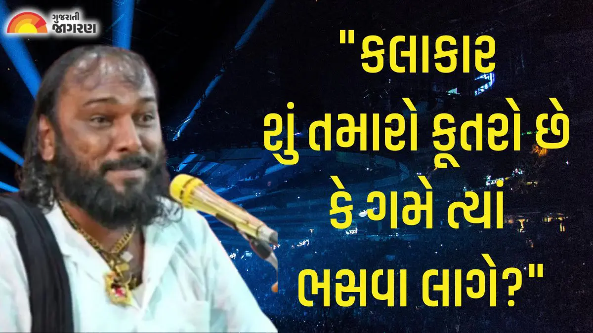 હકાભા ગઢવીએ મંચ પરથી રોષ વ્યક્ત કરતા કહ્યું હતું કે, કલાકારોને સતત પૂછવામાં આવે છે કે જ્યારે કોઈ ઘટના બને છે ત્યારે તેઓ કેમ ચૂપ રહે છે. તેમણે ઉદાહરણ આપતા કહ્યું કે, "લોકો પૂછે છે કે અદાણીએ ખેડૂતોની જમીન લઈ લીધી તો કેમ કલાકાર નથી બોલતા? શું અમે ત્યાં દસ્તાવેજ કર્યા છે?" હકાભાએ કડક શબ્દોમાં ઉમેર્યું કે, "કલાકાર શું તમારો કૂતરો છે? કે તમે કહો ત્યાં ભસવા માંડે".