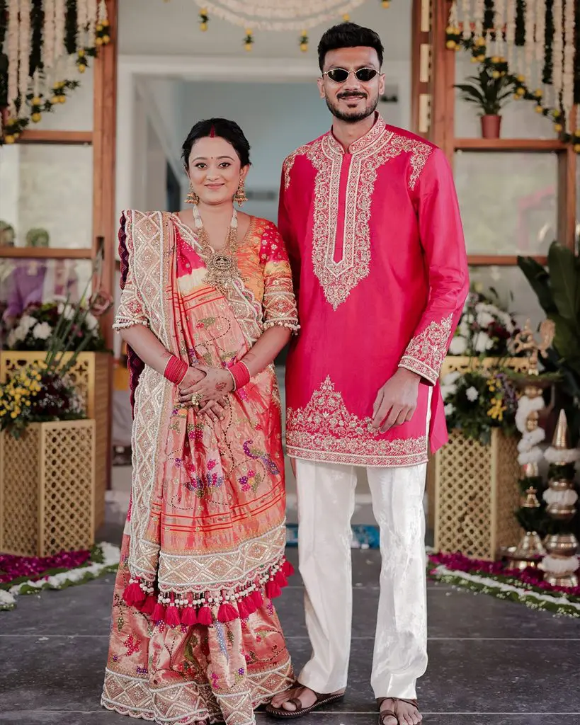 સોશિયલ મીડિયામાં મૂકવામાં આવેલી પોસ્ટમાં અક્ષર પટેલ પારંપારિક કૂર્તા-પાયજામાં, જ્યારે પત્ની મેહા સાડીમાં જોવા મળી રહ્યા છે. 'Haksh Villa'નું ઇન્ટિરિયર મોર્ડન ડિઝાઇન અને ટ્રેડિશનલ ટચનું સુંદર મિશ્રણ દર્શાવે છે.