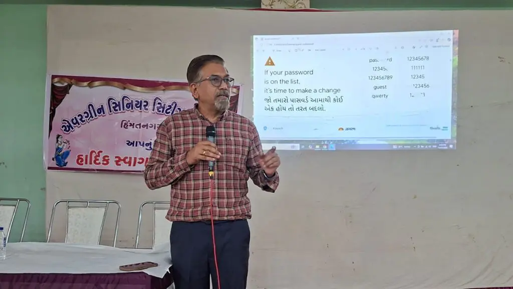 હિંમતનગરના લક્ષ્મી પાર્ટી પ્લોટ બેન્ક્વેટ હોલ ખાતે આયોજિત કાર્યક્રમમાં, વિશ્વાસ ન્યૂઝના નિષ્ણાતોએ ઝડપથી વધી રહેલા સાયબર ક્રાઈમ અને છેતરપિંડી વિશે જનતાને માહિતી આપી અને ગુગલનો "ડિજીકવચ" કાર્યક્રમ રજૂ કર્યો. આ કાર્યક્રમનું મહત્વ સમજાવતા, તેમણે કહ્યું કે સાયબર ગુનેગારો વરિષ્ઠ નાગરિકોને વધુ વખત નિશાન બનાવે છે. ક્યારેક તેઓ પેન્શન સસ્પેન્શનના બહાને OTP માંગે છે, અને ક્યારેક તેઓ નકલી નોકરી કૌભાંડો અને રોકાણ કૌભાંડોની આડમાં વરિષ્ઠ નાગરિકોને નિશાન બનાવે છે.