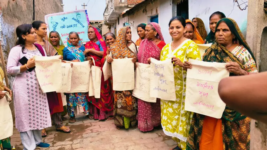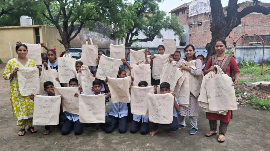 કાપડમાંથી થેલીઓ બનાવી ઘરે-ઘરે નિઃશુલ્ક વિતરણ