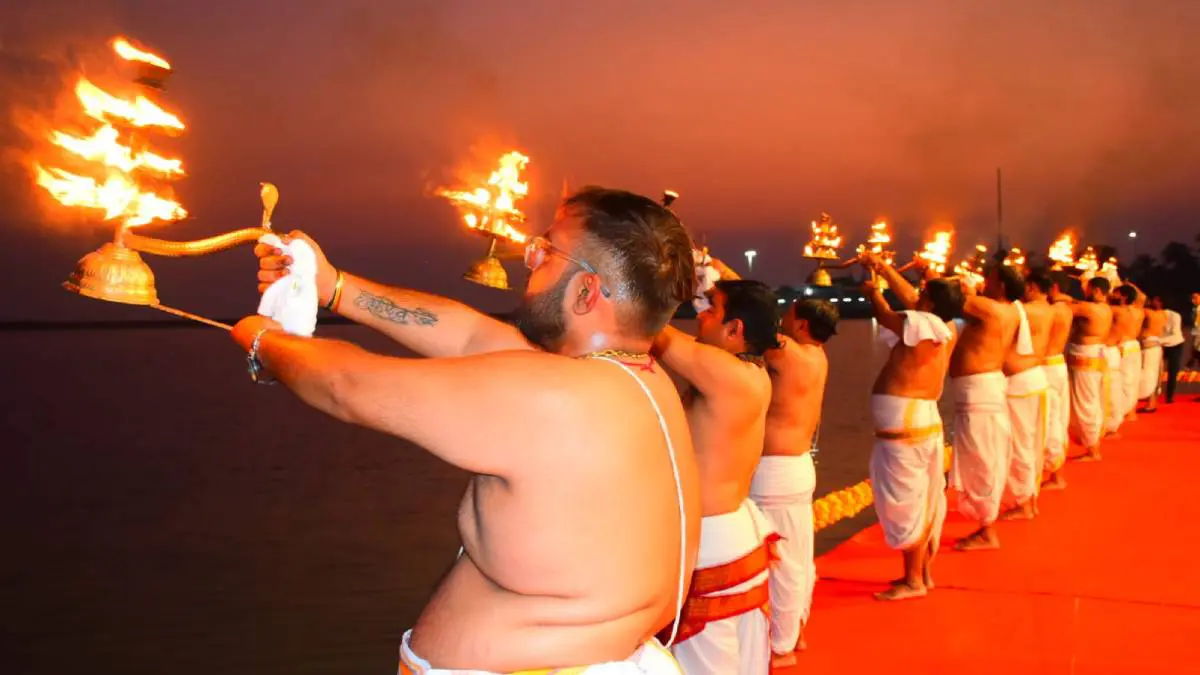 Gir Somnath: ભારતની અડગ આસ્થા, સાહસ અને સ્વાભિમાનનું પ્રતિક એવા પ્રથમ જ્યોતિર્લિંગના આંગણે મહાશિવરાત્રિની પૂર્વ સંધ્યાએ કલા અને સંસ્કૃતિના દ્વારા આરાધનાના અલૌકિક ‘સોમનાથ મહોત્સવ’ને ખૂલ્લો મૂકતાં પહેલા ઢળતી સાંજે ત્રિવેણી સંગમ ઘાટ ખાતે જિલ્લા પંચાયત પ્રમુખ મંજૂલાબહેન મૂછાર, સાંસદ રાજેશભાઈ ચુડાસમા સહિત મહાનુભાવોએ ‘સંગમ આરતી’ કરી હતી.