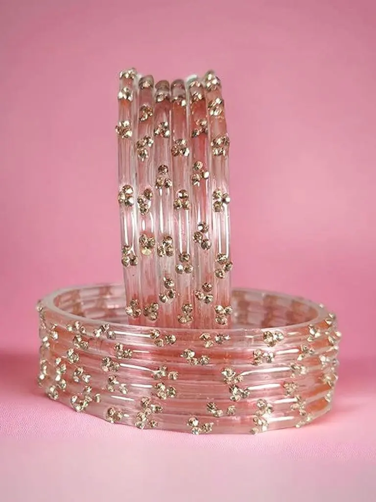 તમે તમારા હાથની સુંદરતા વધારવા માટે ગુલાબી કાચની બંગડીઓ પહેરી શકો છો. આ બંગડીઓ પહેરવામાં આવે ત્યારે સુંદર લાગે છે. તમને બજારમાં આ 40 થી 50 રૂપિયા પ્રતિ બોક્સમાં મળી શકે છે.